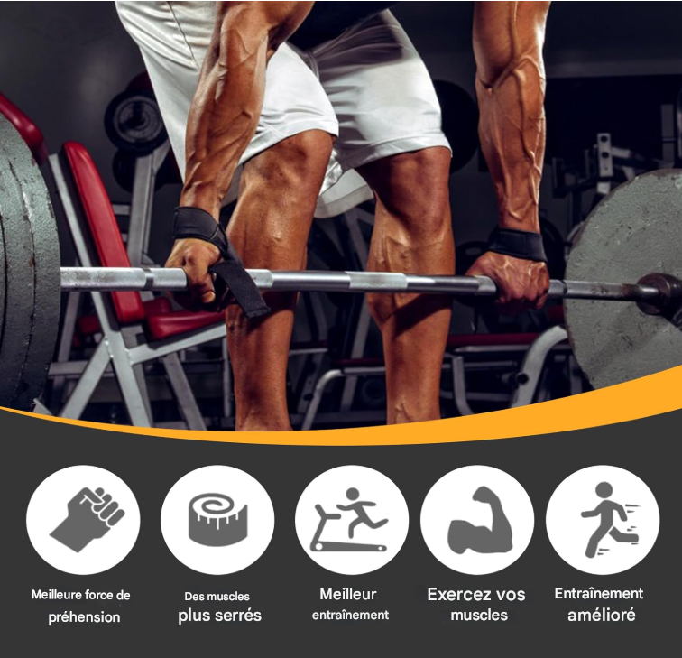 Paire de bracelets d'haltérophilie, idéales pour les exercices intenses et la musculation, les bracelets offrent un soutien supplémentaire aux poignets et aident à améliorer les performances athlétiques.