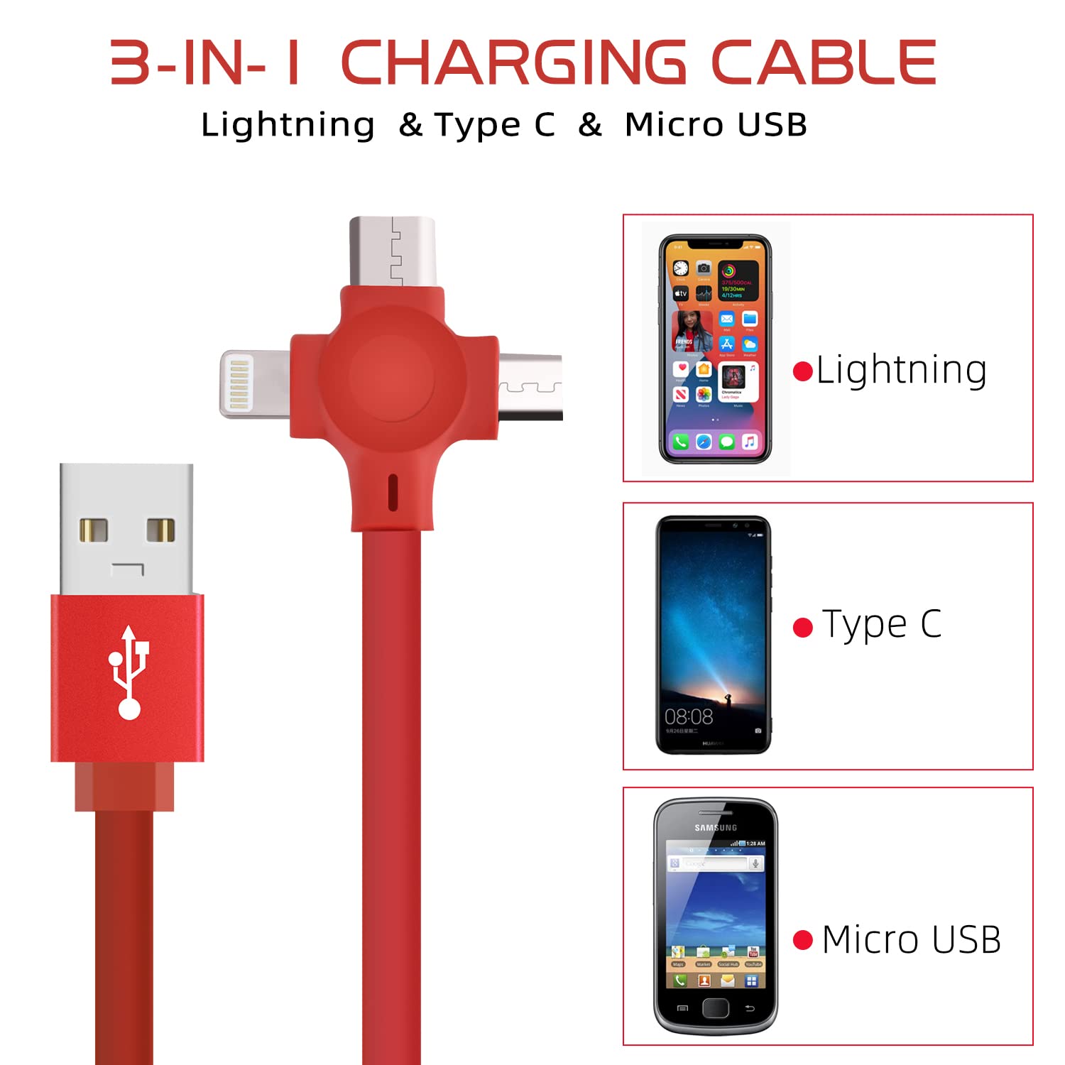 🔌 CHARGE POLYVALENTE : Chargez facilement vos appareils avec notre câble universel 3-en-1 ! Il est équipé de connecteurs Lightning, USB-C et Micro USB pour assurer une compatibilité avec une large gamme de smartphones, tablettes et autres appareils. Pas besoin de transporter plusieurs câbles : simplifiez-vous la vie avec cette solution tout-en-un.