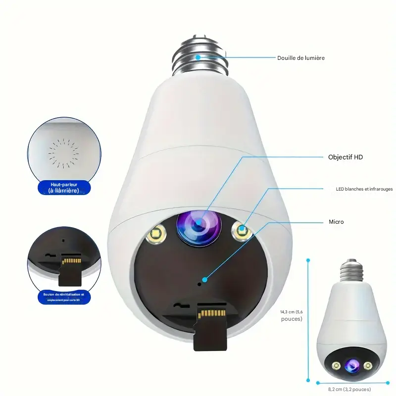 Caméra de surveillance – Sécurité Intelligente en Forme d'Ampoule E27.