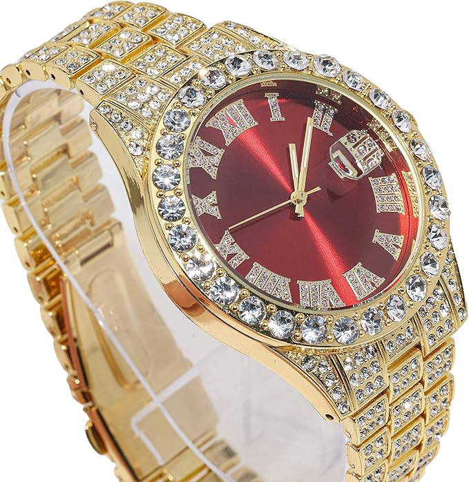 ✨ Notre collection exclusive et complète se caractérise par un savoir-faire de fabrication haut et précis, incarné dans son boîtier parsemé de pierres Rayan soigneusement sélectionnées, tandis que son cadran rouge présente des chiffres romains cloutés qui scintillent également et confèrent une élégance distinctive.