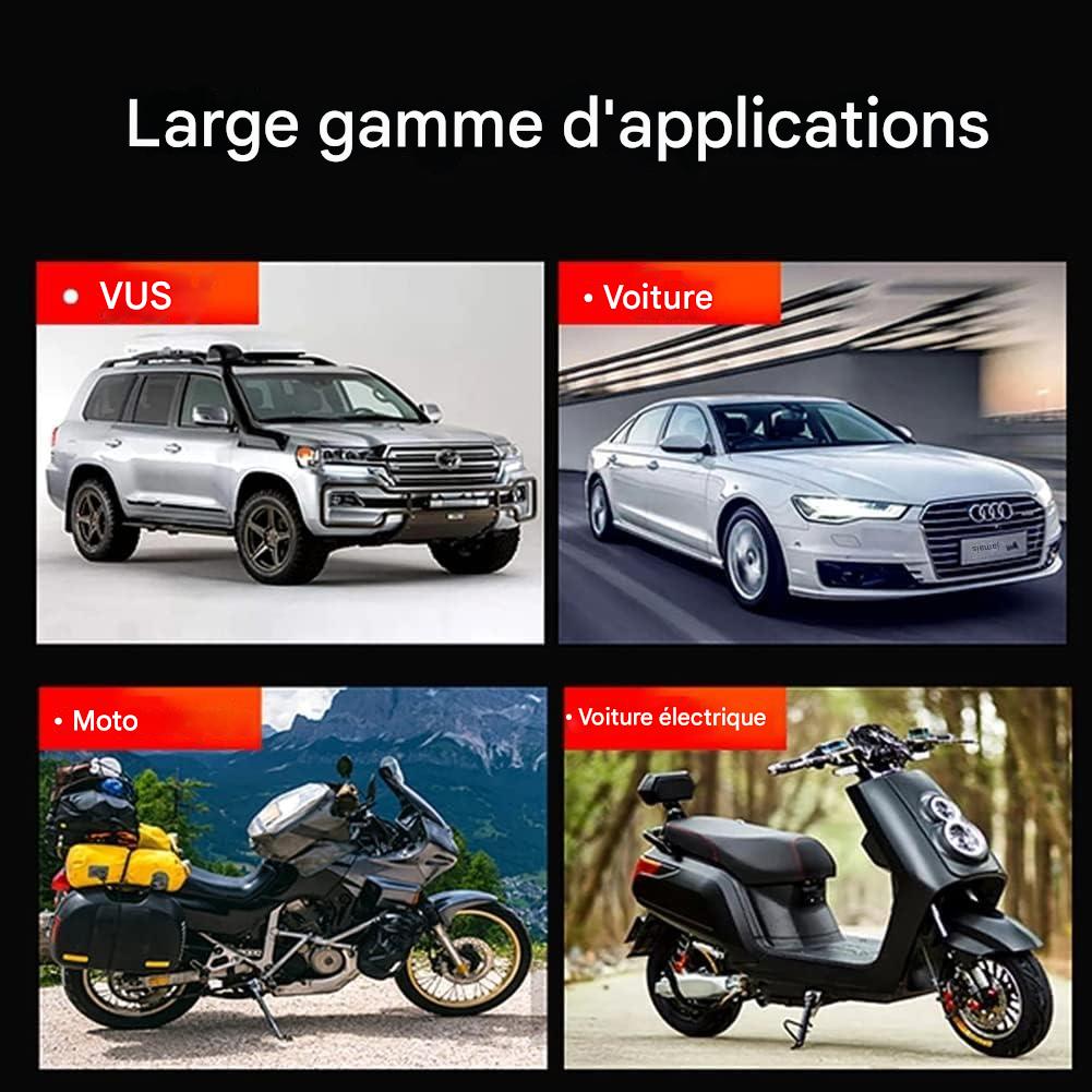 ✔️ Compatible avec la majorité des pneus : Parfait pour les voitures, motos, scooters, et même certains pneus de vélos.