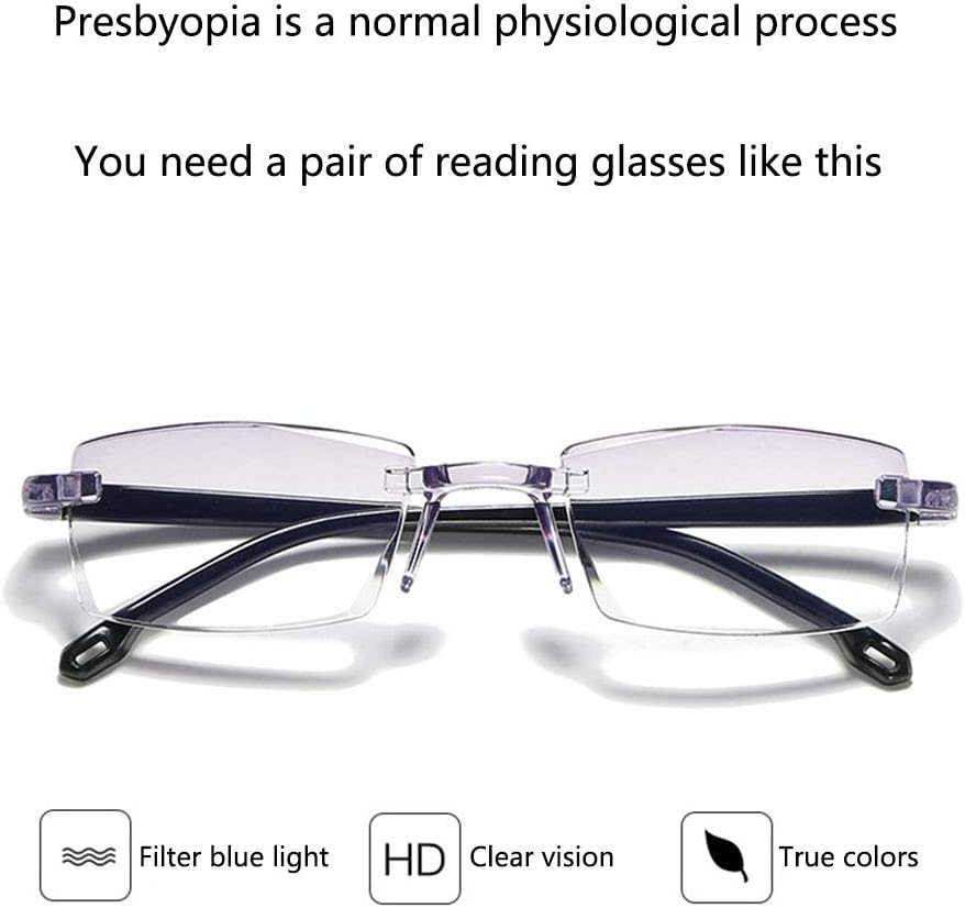 Nous comprenons que le style est aussi important que la fonctionnalité, c'est pourquoi nos lunettes de lecture anti-lumière bleue sont présentées dans un design sans monture avec un design cool et moderne qui ajoute une touche lumineuse au visage et un look élégant.