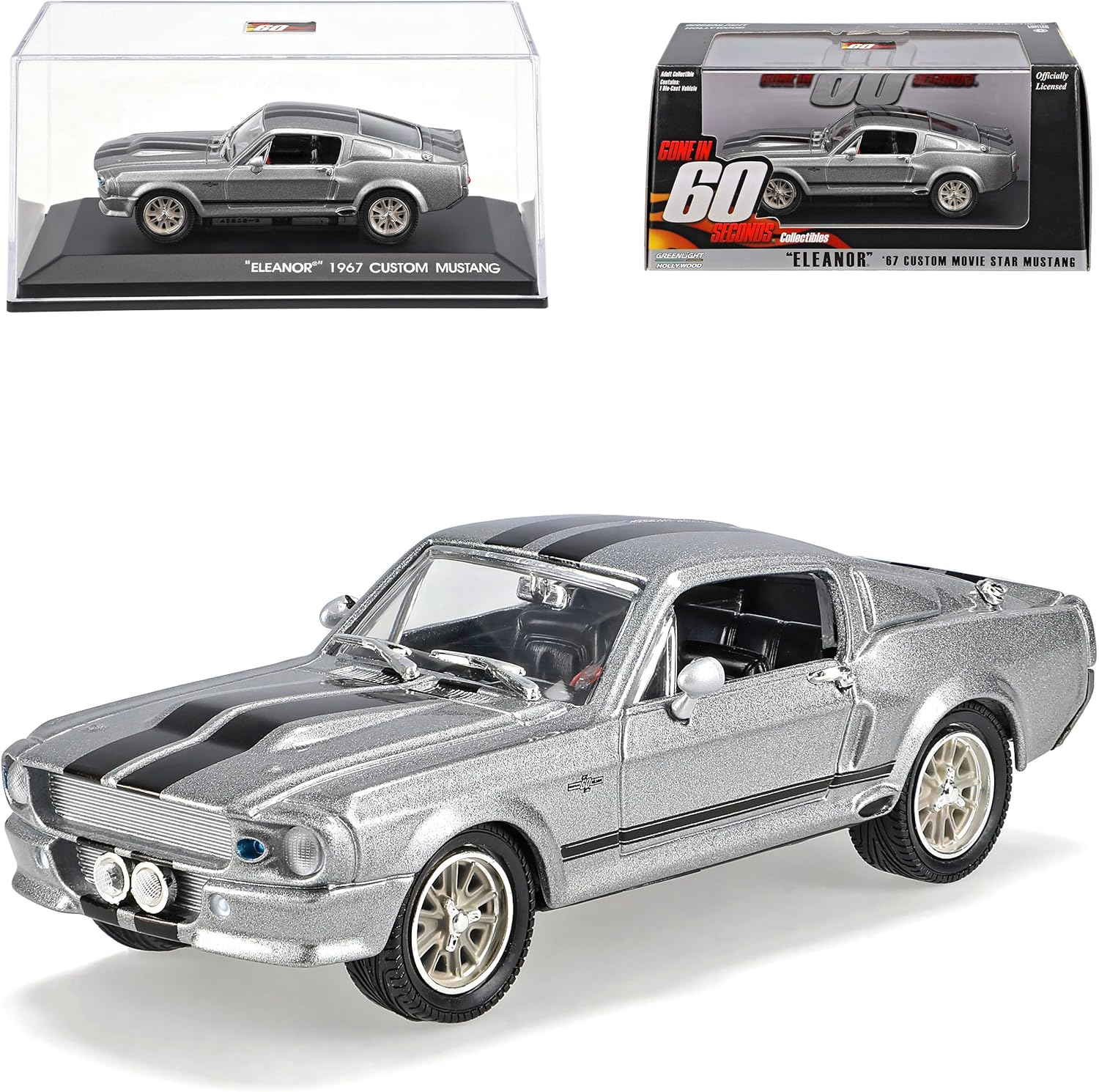 Cette miniature de Ford Mustang Shelby GT500 Eleanor arbore une peinture gris métallisé avec des bandes noires sportives, des jantes réalistes et des détails raffinés qui en font une réplique fidèle d'une voiture emblématique.