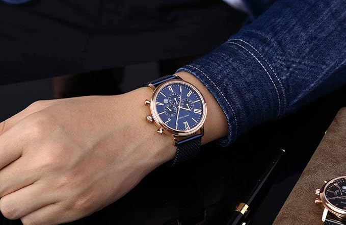 Notre montre-bracelet pour homme est dotée d'un bracelet en maille d'acier inoxydable de haute qualité qui assure un confort inégalé et assure également un ajustement compatible avec toutes les tailles de poignet, permettant à cette montre de s'adapter parfaitement à votre poignet.