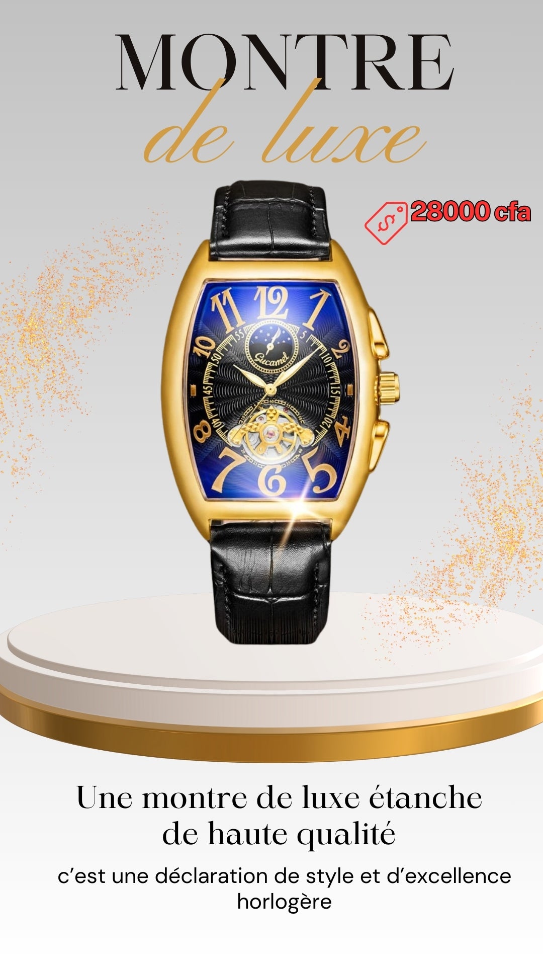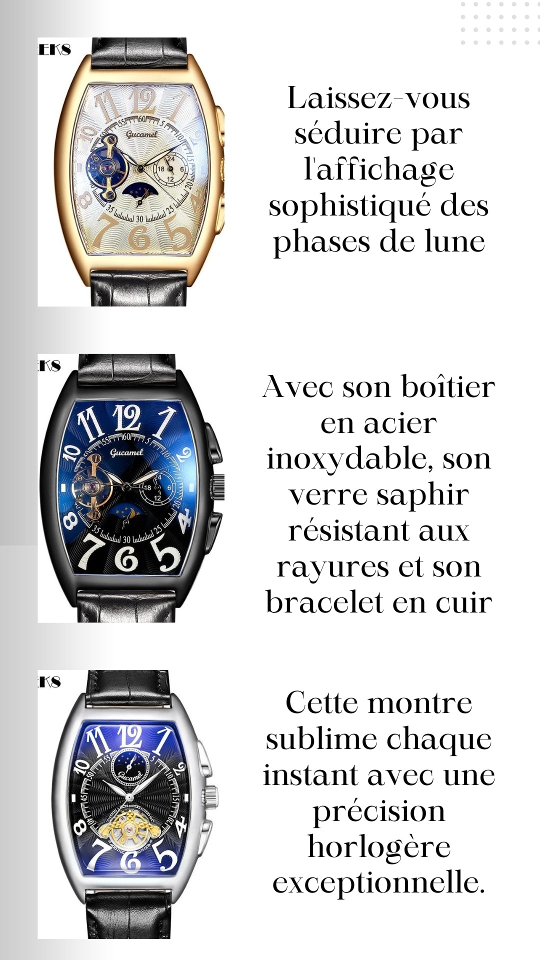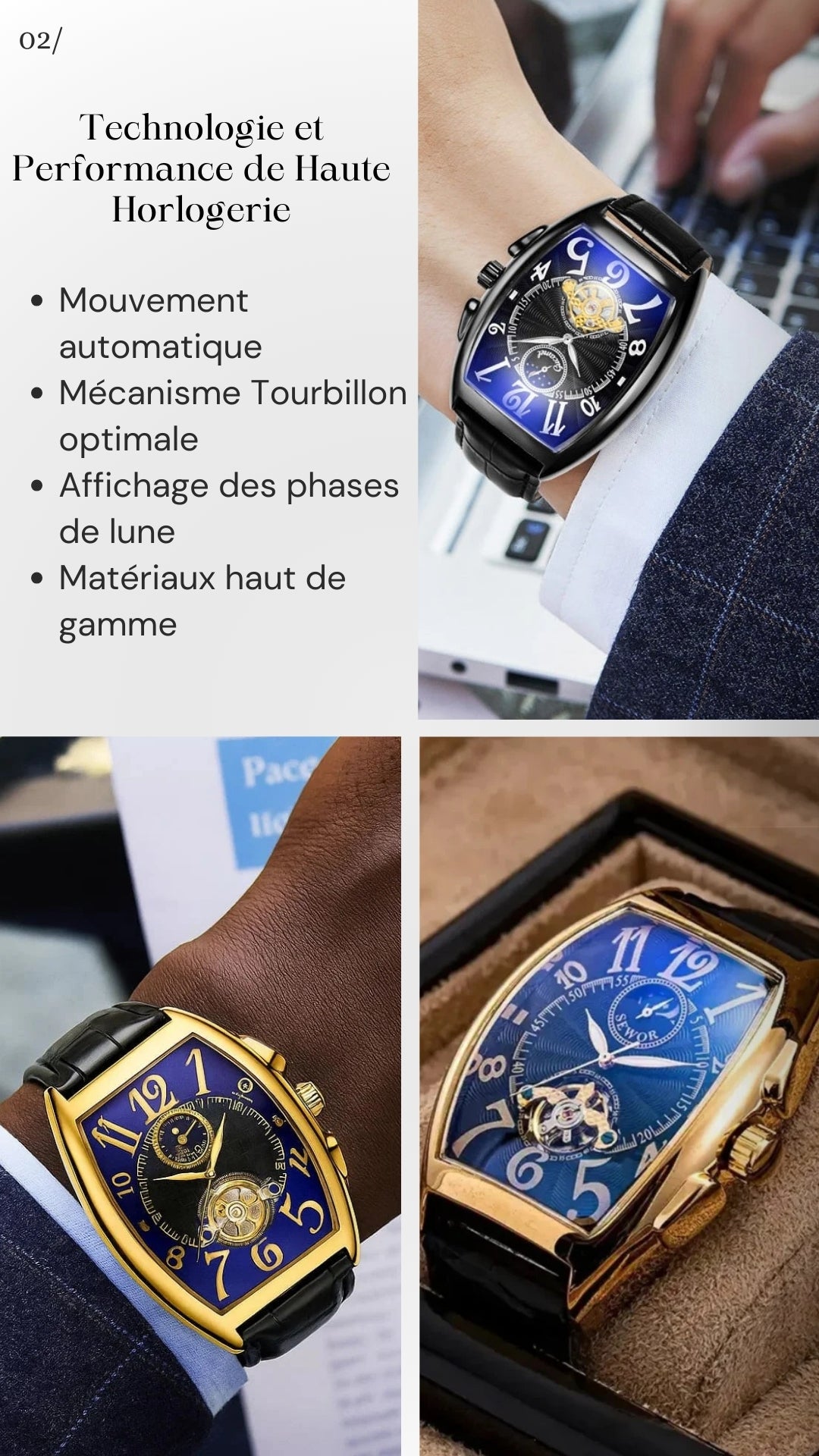 Montre mécanique automatique à tourbillon à phase de lune pour homme.