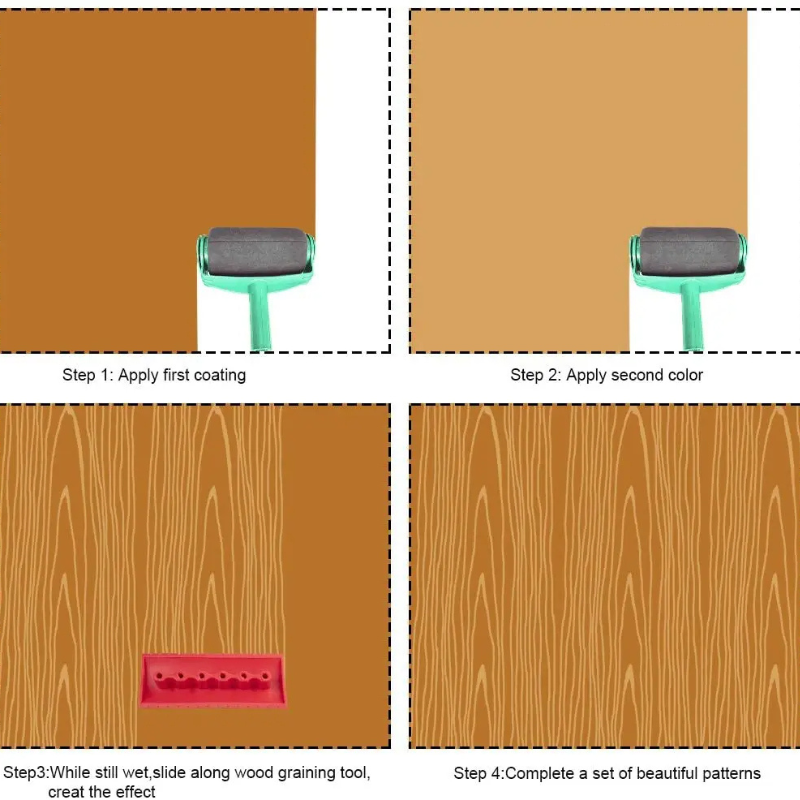 Ne laissez pas vos murs être simplement des surfaces plates et ennuyeuses, 🛒Commandez maintenant et transformez-les en chefs-d'œuvre visuels avec l'outil de peinture en caoutchouc effet bois et préparez-vous à être impressionné par des murs captivants et inspirants.