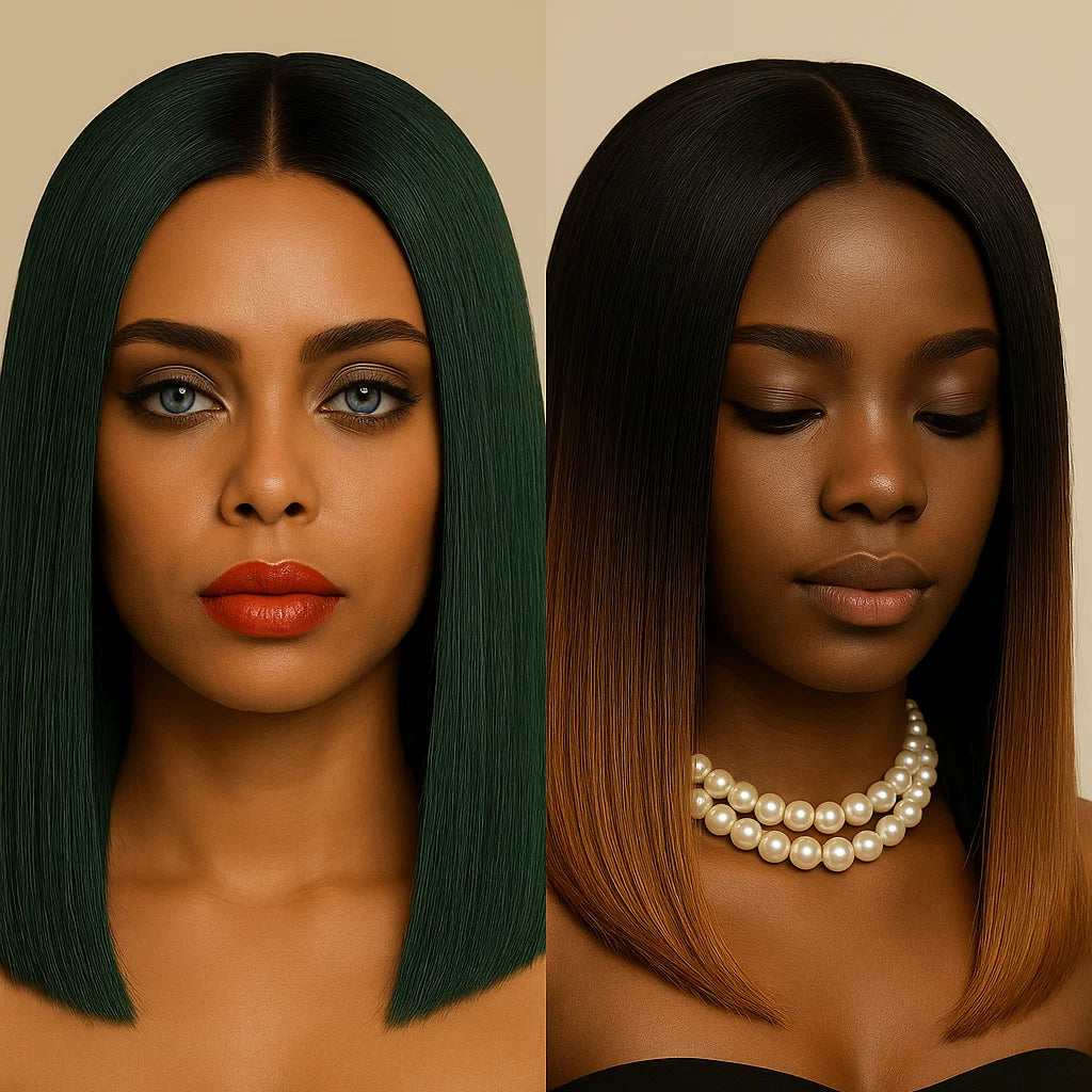 💇♀️ Modèle 1 : Coupe carrée verte émeraude