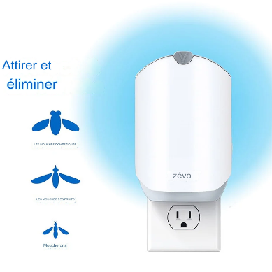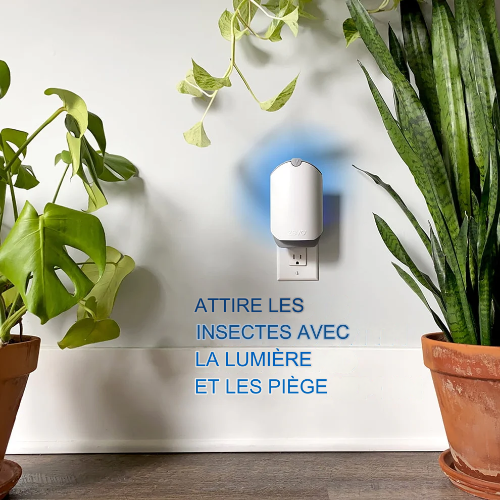 Notre piège utilise une combinaison de rayons UV et de chaleur pour attirer les insectes volants, une fois à l'intérieur, ils sont capturés par un tampon collant discret et non toxique.