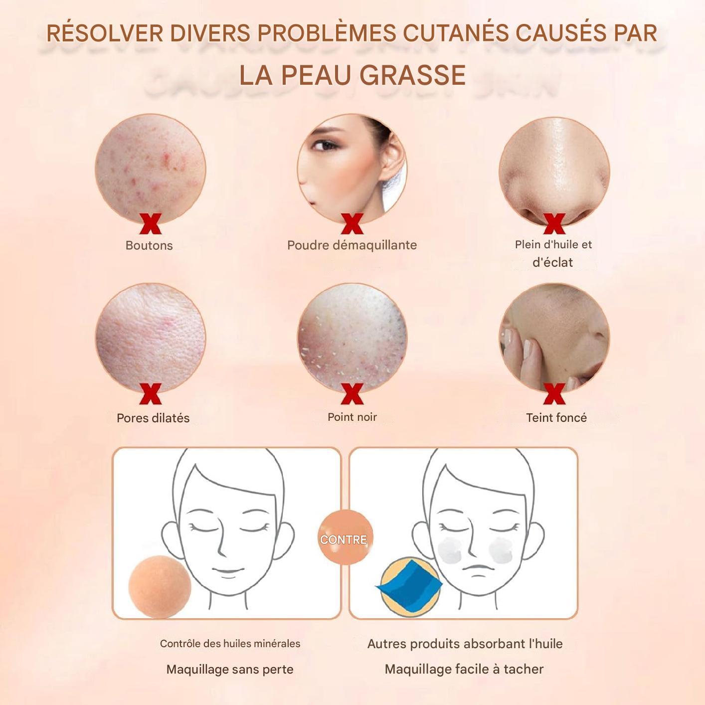 ✅ Absorption immédiate de l’excès de sébum : Grâce à sa composition naturelle en pierre volcanique, elle matifie instantanément la peau sans perturber votre maquillage.