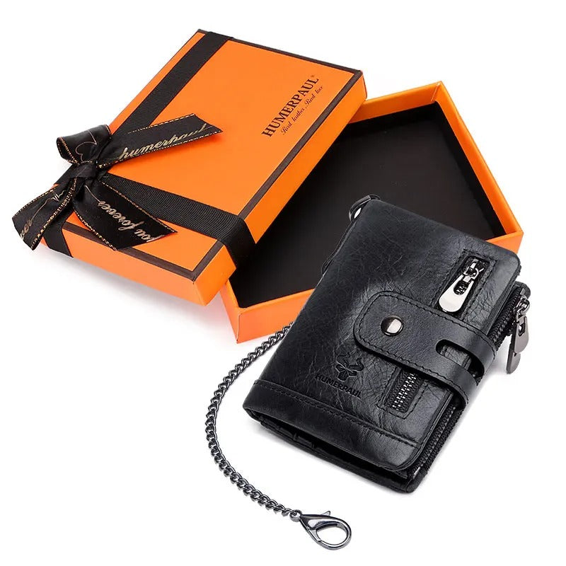 Pour un maximum de sécurité, ce portefeuille est équipé d'une chaîne robuste; Fixez-la facilement à votre pantalon pour garder votre portefeuille toujours à portée de main.