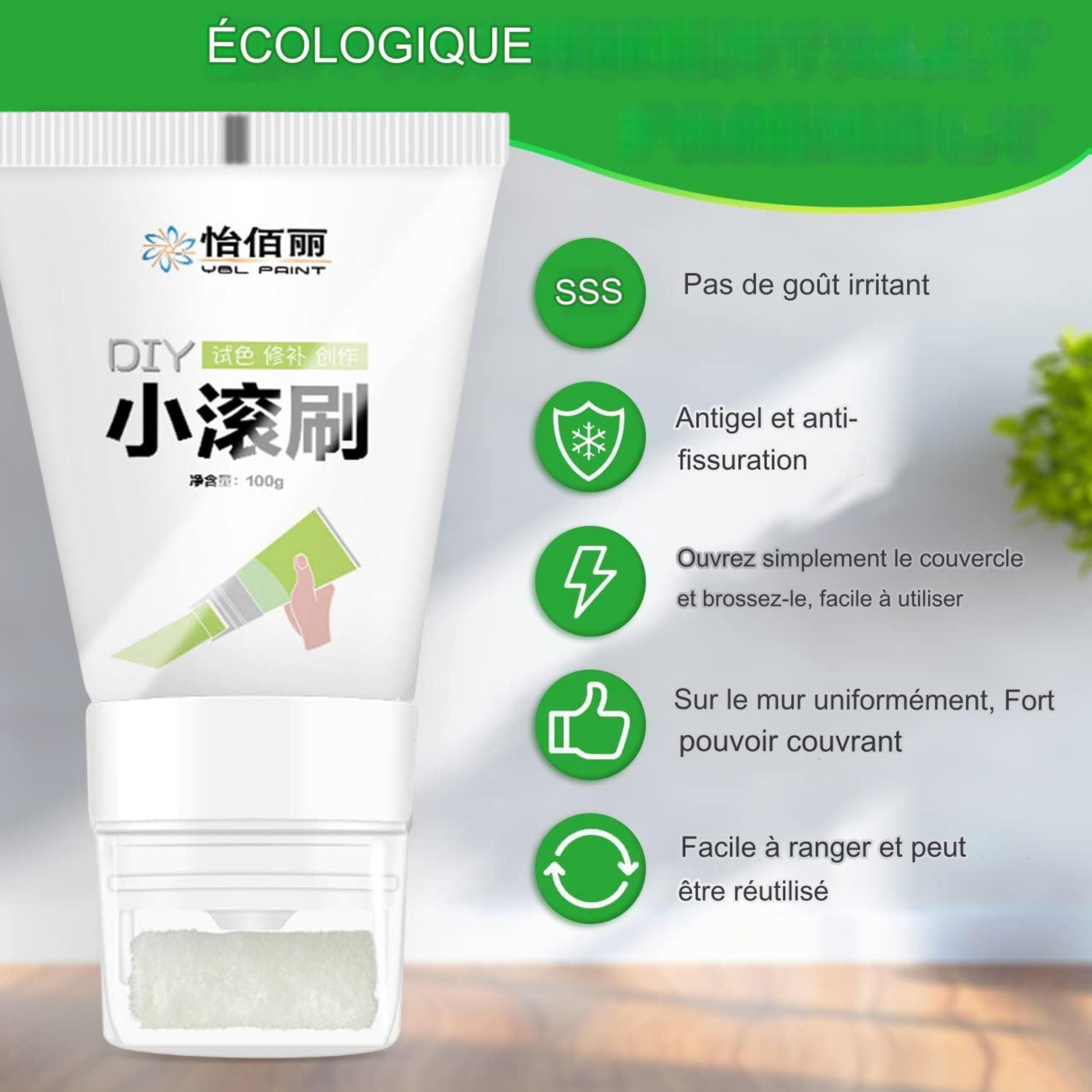 Ce mini produit de réparation de murs à rouleaux est formulé avec des ingrédients non toxiques, écologiques et sans odeur afin que vous puissiez l'utiliser en toute tranquillité d'esprit.