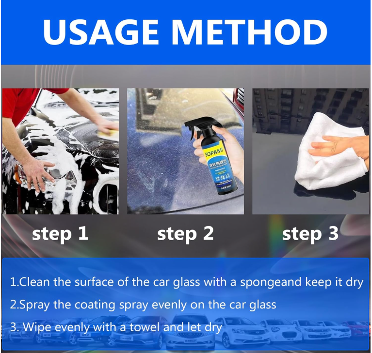 Vous n’avez besoin d’aucune compétence particulière pour utiliser ce produit, Il vous suffit de vaporiser Sopami Spray sur la surface ciblée, puis de l'essuyer avec l'éponge fournie, et vous obtiendrez des résultats étonnants en quelques instants.