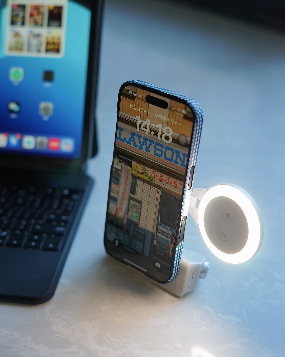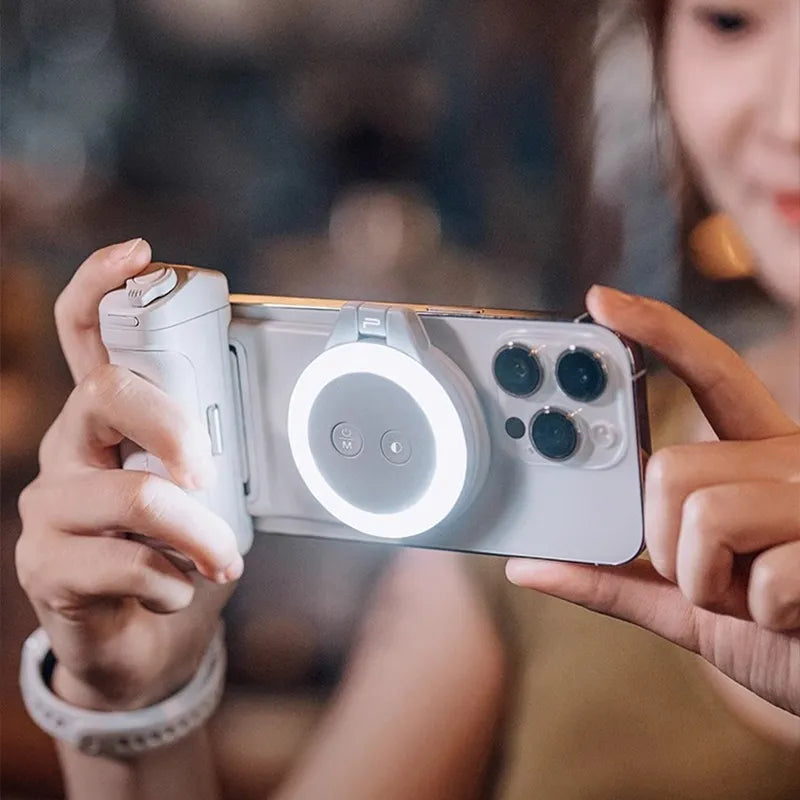 Le support magnétique combine support de téléphone, chargeur sans fil, perche à selfie, éclairage et batterie supplémentaire pour une expérience de photographie pratique et facile.